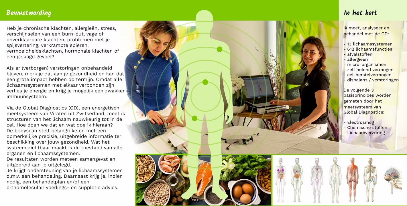 In 2019 heb ik een Professional resonantiefrequentie apparaat gekocht die meer algemeen werkte en ik had de behoefte om op celniveau te gaan werken. Omdat ik voelde dat behandelen met frequentie de toekomst zou worden heb ik eind 2021 een Vitatec apparaat gekocht (de bodyscan) waar ik sindsdien mensen mee begeleid. Omdat ik meer verdieping zocht heb ik bij Petra Versteegh de Opleiding tot SOM Therapeut gevolgd.
